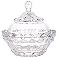 Сахарница на ножках выполнена из качественного прочного узорного стекла и снабжена изящной крышкой. Сахарница предназначена для подачи сахара и различных сладостей. Изящная классическая сахарница станет прекрасным дополнением к набору посуды, отлично подойдет для сервировки праздничного стола, а также будет прекрасным подарком. Посуда обладает непористой поверхностью и не впитывает запахи. Легко и быстро моется. Подходит для мытья в посудомоечной машине.