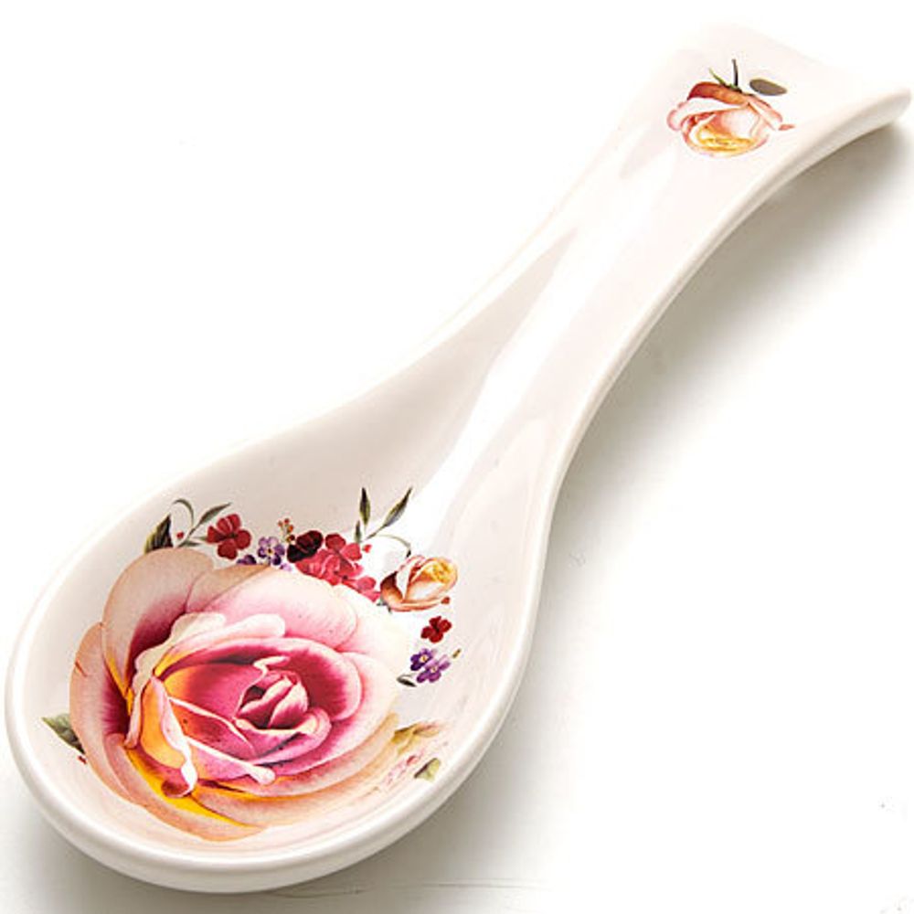 Подставка для ложки LORAINE выполнена из качественной доломитовой керамики с красочным цветочным рисунком. Пожалуй, одно из самых удобных современных приспособлений на кухне — подставка для ложки. Подложка может служить подставкой под разнообразные кухонные аксессуары. Например, так удобно при жарке продуктов на сковороде использовать ложку подставку для лопатки. Там она не загрязнит ни стол, ни другую посуду. Более того, даже обычную суповую ложку можно класть на нее. С помощью такой подставки следить за чистотой станет просто и приятно. Подставка выполнена таким образом, что ложка на ней стоит с легким наклоном, поэтому ее легко брать и ставить на место. Изделие легко и просто мыть. Подходит для мытья в посудомоечной машине.