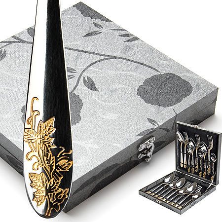 Элегантные золотые узоры на столовых приборах выполнены по технологии плазменного напыления, обеспечивающего высокую износостойкость покрытия. Стильный, классический дизайн и отличное качество столовых приборов MAYER BOCH делают набор желанной покупкой для любого, даже самого пристрастного, клиента. Набор столовых приборов MAYER BOCH, безусловно, займет достойное место на любой кухне. Набор подходит как для ежедневного использования, так и для торжественных случаев.