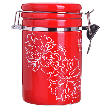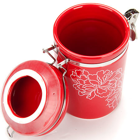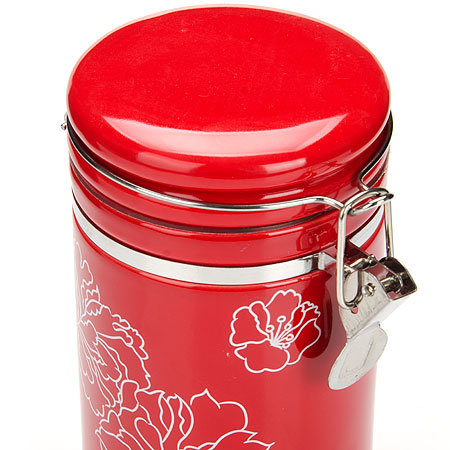 Банка для сыпучих продуктов (герметичный контейнер) LORAINE изготовлена из прочной БИО и ЭКО доломитовой керамики красного цвета с белыми цветами. Банка прекрасно подойдет для хранения различных сыпучих продуктов: специй, чая, кофе, сахара, круп и многого другого. Крышка герметично закрывается с помощью металлического зажима клипсы, дольше сохраняя свежесть продуктов. Гладкая и ровная поверхность обеспечивает легкую очистку. Такая банка не только сэкономит место на вашей кухне, но и украсит интерьер. Оригинальный дизайн и красивое оформление позволит сделать ее отличным подарком на любой праздник. Подходит для использования в холодильнике. Подходит для мытья в посудомоечной машине.