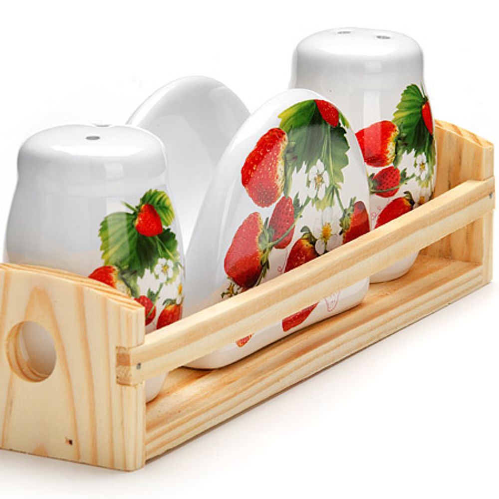Набор для специй LORAINE состоит из солонки, перечницы, салфетницы и деревянной подставки. Предметы набора выполнены из прочной доломитовой БИО и ЭКО керамики. Отверстия, в которые засыпаются специи, закрыты силиконовыми пробками. Благодаря своим небольшим размерам набор не займет много места на Вашей кухне. Дизайн, эстетичность и функциональность набора позволят ему стать достойным дополнением к кухонному инвентарю и украсить сервировку Вашего стола.