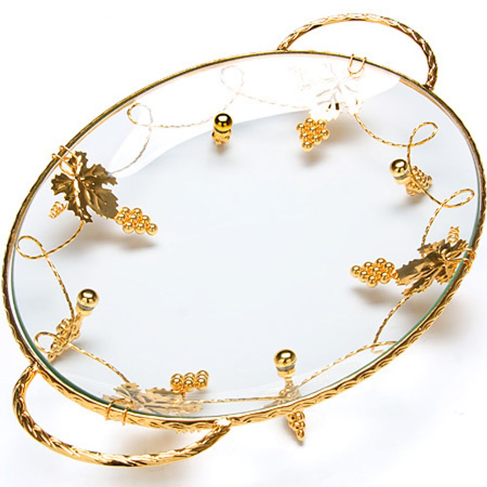 Элегантное блюдо MAYER&BOCH, выполненное из стекла, сочетает в себе изысканный дизайн с максимальной функциональностью. Блюдо ВАНЕССА предназначено для красивой подачи на стол конфет, фруктов и десертов. Блюдо оформлено оригинальным золотым орнаментом. Ножки в виде виноградной лозы выполнены из стали с золотым покрытием. Блюдо украсит сервировку вашего стола и подчеркнет прекрасный вкус хозяина, а также станет отличным подарком.