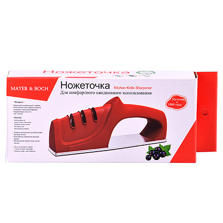 Станок для заточки ножей MAYER&BOCH позволит Вам быстро и качественно заточить кухонные ножи. Ножеточка подходит для различных видов ножей из нержавеющей стали, кроме ножей с зубчатыми лезвиями и ножниц. Станок имеет 3 отсека. Во время заточки не следует надавливать на нож, чтобы избежать повреждения лезвия. После заточки ножи следует аккуратно вымыть и вытереть насухо. Ножеточка имеет противоскользящее основание и удобную эргономичную ручку. Чтобы избежать повреждений лезвия, точите ножи очень аккуратно и ухаживайте за ними надлежащим образом. При заточке керамических ножей, керамическое покрытие может стираться, что является нормальным явлением. Не мойте станок в посудомоечной машине, не погружайте в воду и любую другую жидкость. При чистке станка не используйте абразивные моющие средства. Подходит только для ножей из нержавеющей стали.