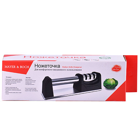 Станок для заточки ножей MAYER&BOCH позволит Вам быстро и качественно заточить кухонные ножи. Ножеточка подходит для различных видов ножей из нержавеющей стали, кроме ножей с зубчатыми лезвиями и ножниц. Станок имеет 3 отсека. Во время заточки не следует надавливать на нож, чтобы избежать повреждения лезвия. После заточки ножи следует аккуратно вымыть и вытереть насухо. Ножеточка имеет противоскользящее основание и удобную эргономичную ручку. Чтобы избежать повреждений лезвия, точите ножи очень аккуратно и ухаживайте за ними надлежащим образом. При заточке керамических ножей, керамическое покрытие может стираться, что является нормальным явлением. Не мойте станок в посудомоечной машине, не погружайте в воду и любую другую жидкость. При чистке станка не используйте абразивные моющие средства. Подходит только для ножей из нержавеющей стали.