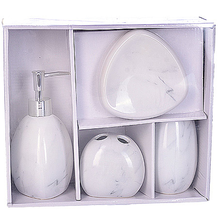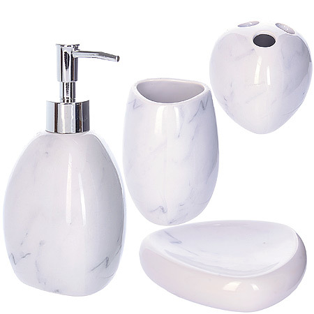 В набор аксессуаров MAYER BOCH для ванной комнаты входят: стакан 360мл., подставка для зубных щеток, мыльница и диспенсер для жидкого мыла 380мл. с дозатором. Набор выполнен из керамики высокого качества, поэтому за ним очень легко ухаживать, для этого достаточно просто периодически промывать изделия водой. Все элементы выдержаны в одном стиле, что позволяет создать в ванной комнате стильный и оригинальный функционально декоративный ансамбль. Такой набор аксессуаров придаст вашей ванной комнате элегантность и современность!