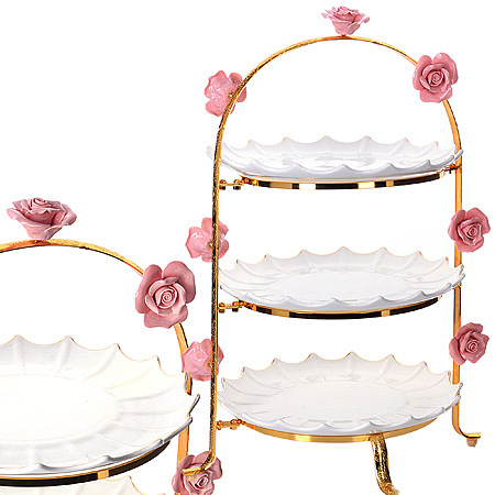 Элегантная конфетница LORAINE, выполненная из фарфора и металла, сочетает в себе изысканный дизайн с максимальной функциональностью. Конфетница состоит из 3х ярусов и предназначена для красивой сервировки конфет, фруктов и десертов.Стойка держатель конфетницы выполнена из стали с золотым покрытием. Конфетница украсит сервировку вашего стола и подчеркнет прекрасный вкус хозяина, а также станет отличным подарком.