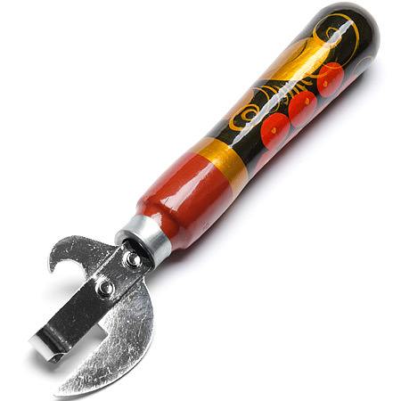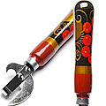 Удобная и простая открывалка - консервный нож, с чёрной лаковой деревянной ручкой, ручной росписью в стиле хохломы и двумя острыми металлическими концами, предназначен для открывания банок, бутылок и консервов. Этот инструмент станет Вашим помощником для любых творческих кухонных изысканий, а также в любых походах и путешествиях.