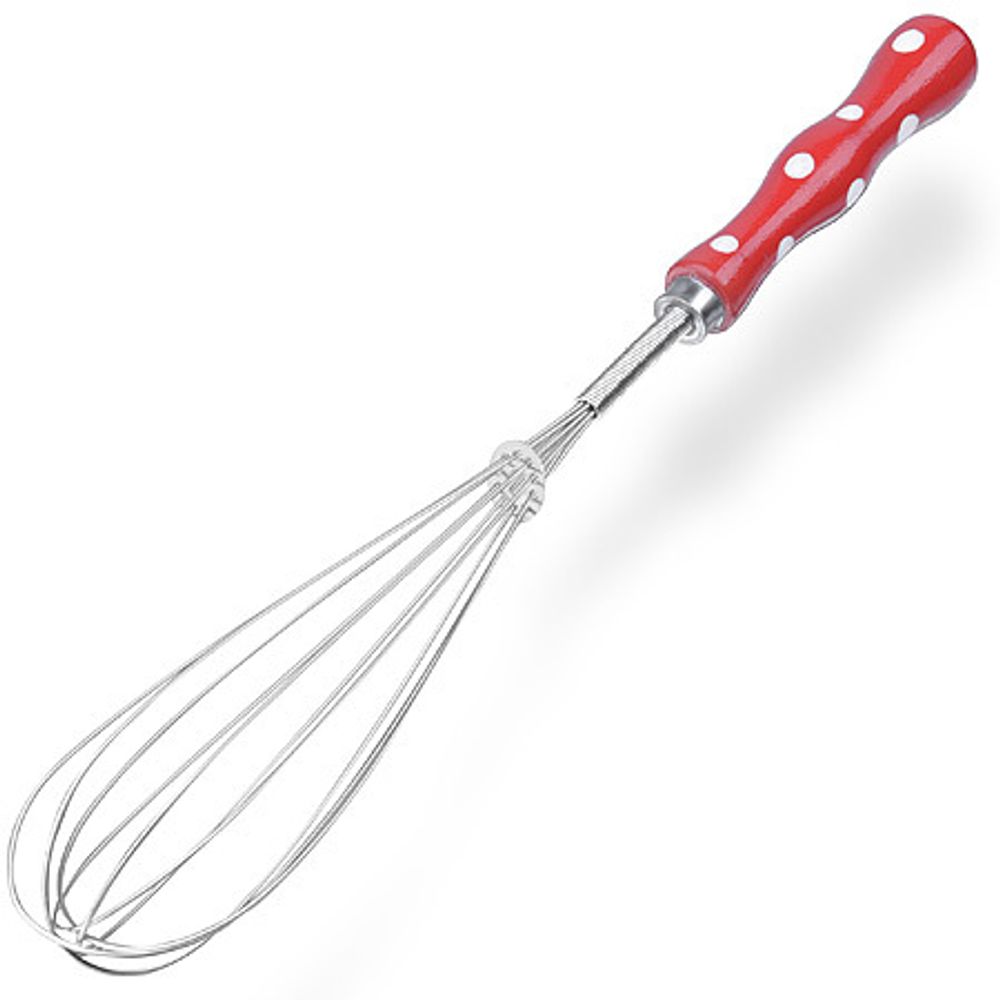 Специальная конструкция венчика позволяет без труда достигать краев посуды. Подходит для мытья в посудомоечной машине.