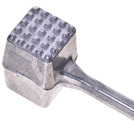 Кухонный молоток для отбивания мяса - один из самый необходимых предметов на кухне. Молоток способен отбить мясо за считанные секунды благодаря рельефной плоскости. Сделан молоток из легкого метала - алюминиевого сплава, благодаря чему с ним легко работать. Занимает мало места на кухне и компактный, а благодаря длине 24см очень удобен и увесист.