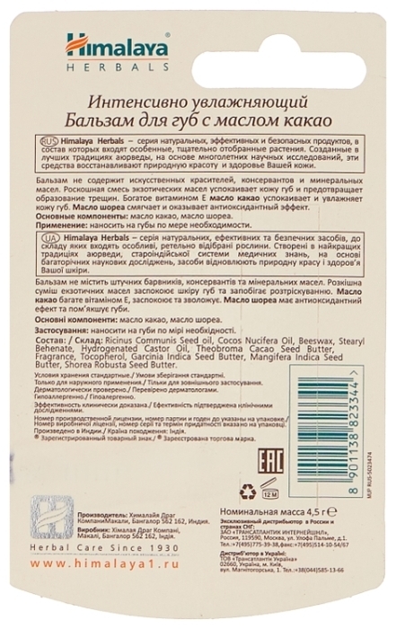 Himalaya Herbals Бальзам-стик для губ с маслом какао 4.5 г