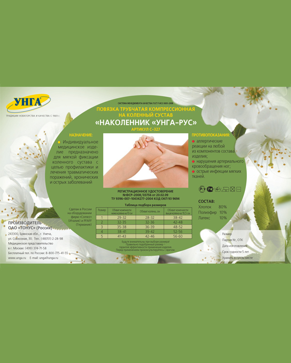 Изготавливается из медицинского трикотажа. Показан при различных болевых ощущениях и варикозном расширении вен с локализацией в области колена. Используется для профилактики и лечения артрита, артроза и травм. Наколенник снижает нагрузку на связочный аппарат, препятствует образованию отёка.