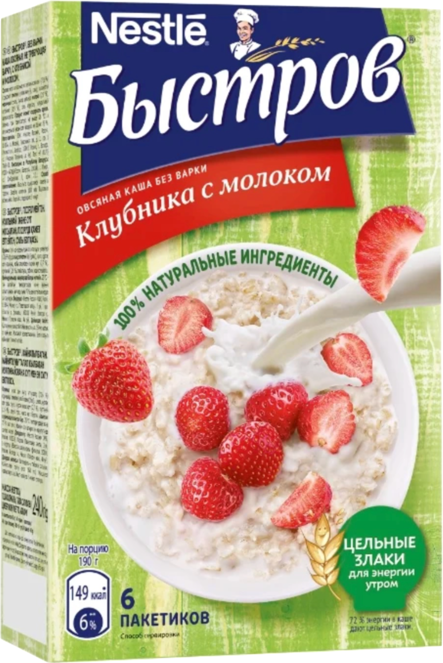 Быстров Каша овсяная Клубника с молоком без варки, порционная (6 шт.)