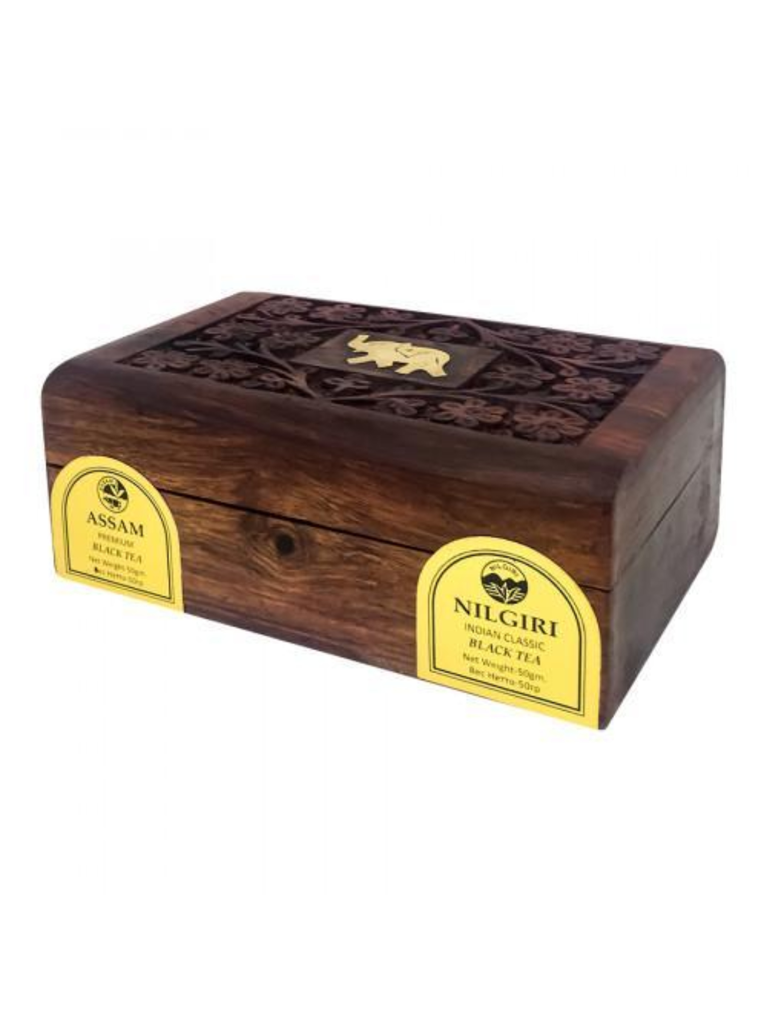 Чай черный и зеленый Bharat Bazaar Assam и Darjeeling в деревянной коробке 100 г