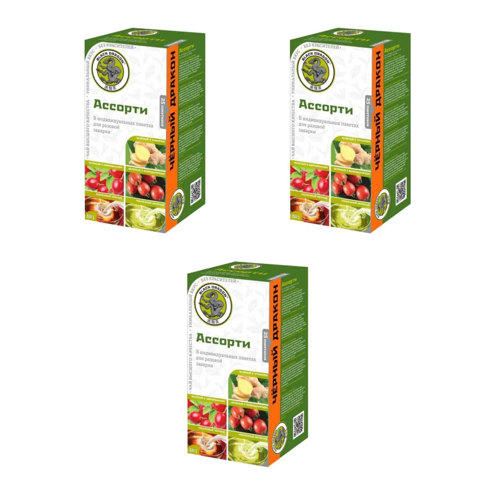 Чай Black dragon Ассорти №1 в пакетиках 25 штук, 3 шт