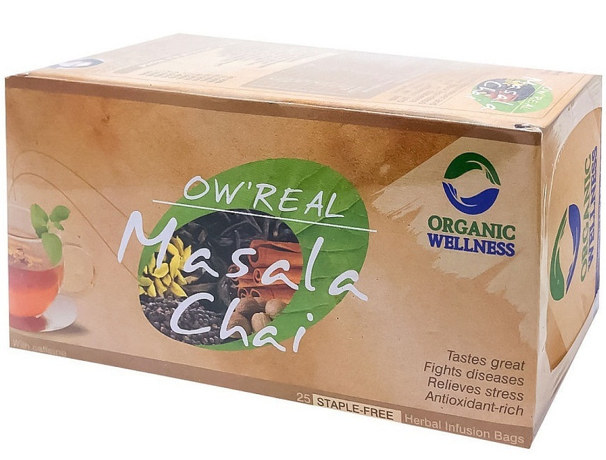 Чай масала, Organic Wellness обладает бодрящим и тонизирующим эффектом, который согревает зимой и утоляет жажду летом. Такое действие напитка обусловлено многокомпонентным составом сырья: листья базилика, сбор лекарственных трав и смесь натуральных индийских специй. Чашка свежезаваренного чая поможет проснуться утром, так как в химической формуле продукта содержится кофеин.