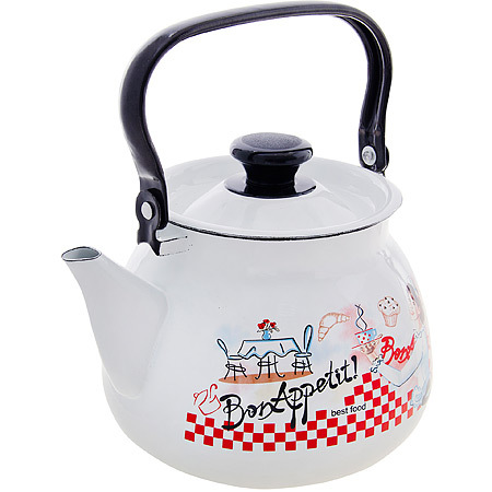 Чайник выполнен из высококачественной эмалированной стали. Сталь устойчива к высоким температурам и не теряет своих свойств даже при очень сильном нагреве. Сталь быстро и равномерно нагревается и хорошо сохраняет тепло, легкая, прочная и долговечная. Внешняя и внутренняя поверхности чайника покрыты эмалью. Подходит для использования на всех типах плит, кроме индукционных . Подходит для мытья в посудомоечной машине.