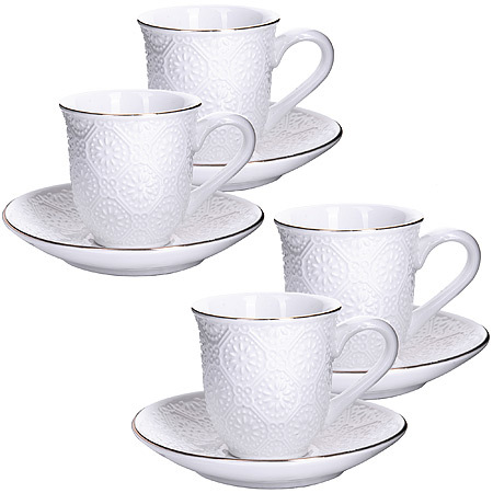 Чайный набор LORAINE на 4 персоны, изготовленный из высококачественного костяного фарфора изысканного белого цвета, состоит из 4-х чашек и 4-х блюдец. Изделия набора украшены тонкой золотой каймой и имеют красивый и нежный дизайн. Набор придется по вкусу и ценителям классики, и тем, кто предпочитает утонченность и изысканность. Он настроит на позитивный лад и подарит хорошее настроение с самого утра. Набор упакован в подарочную упаковку. Такой чайный набор станет прекрасным украшением стола, а процесс чаепития превратится в одно удовольствие! Это замечательный выбор для подарка родным и друзьям!