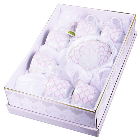 Чайный набор LORAINE на 6 персон, изготовленный из высококачественного костяного фарфора изысканного белого цвета, состоит из 6-ти чашек и 6-ти блюдец. Изделия набора украшены тонкой золотой каймой и имеют красивый и нежный дизайн. Набор придется по вкусу и ценителям классики, и тем, кто предпочитает утонченность и изысканность. Он настроит на позитивный лад и подарит хорошее настроение с самого утра. Набор упакован в подарочную упаковку. Такой чайный набор станет прекрасным украшением стола, а процесс чаепития превратится в одно удовольствие! Это замечательный выбор для подарка родным и друзьям!
