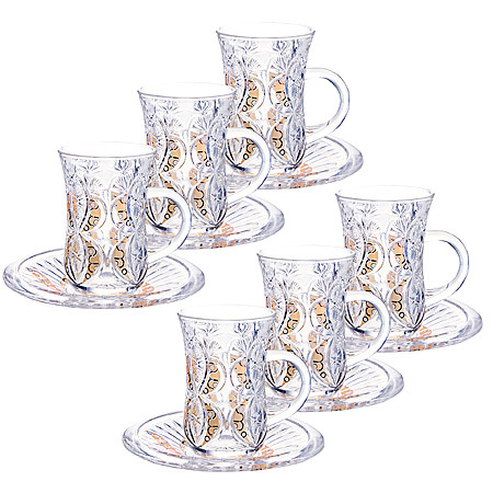 Набор LORAINE из 6-ти чайных пар выполнен из высококачественного стекла и украшен цветным декоративным орнаментом. Стильный, яркий набор стаканов предназначен для подачи горячих и холодных напитков. Оригинальный дизайн, уникальная форма, прозрачные стенки придают набору невероятную эстетичность. Стаканы подойдут для повседневного использования как в домашних условиях, так и в местах общественного питания (кафе, бары, рестораны). Посуда обладает непористой поверхностью, не впитывает запахи, легко моется. В комплекте: 6 стаканов, 6 блюдец.
