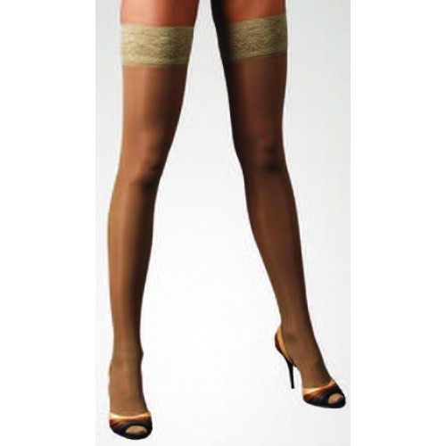 Чулки выполнены из специального материала, который создает строго градуированную степень компрессии: 100 % в самой узкой части щиколоток, 70% в области голени и 40% в области бедра.