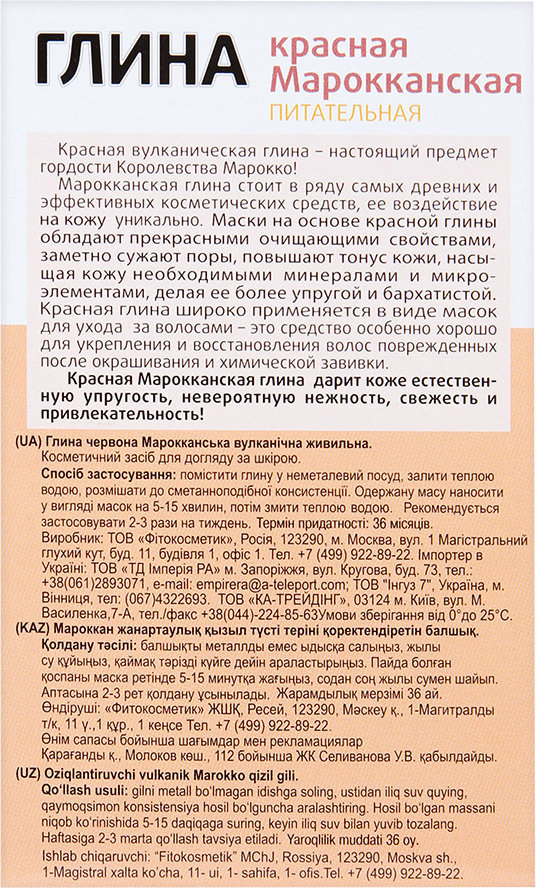 Fito косметик глина красная Марокканская вулканическая питательная, 100 г