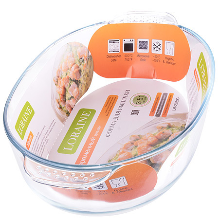 Форма для выпечки LORAINE изготовлена из термостойкого боросиликатного стекла. Форма жаровни овальная с двумя ручками по краям. Жаровня будет отличным выбором для всех любителей блюд, приготовленных в духовке и микроволновой печи. Стеклянное изделие не вступает в реакцию с готовящейся пищей, а потому не выделяет никаких вредных веществ, не подвергается воздействию кислот и солей. Из-за невысокой теплопроводности пища в стеклянной посуде гораздо медленнее остывает. Стеклянная посуда очень удобна для приготовления и подачи самых разнообразных блюд: супов, вторых блюд, десертов. Подходит для использования в духовках, микроволновых печах и морозильных камерах (при постепенном охлаждении и нагреве выдерживает температуру от -40С до 400С). Подходит для мытья в посудомоечной машине.