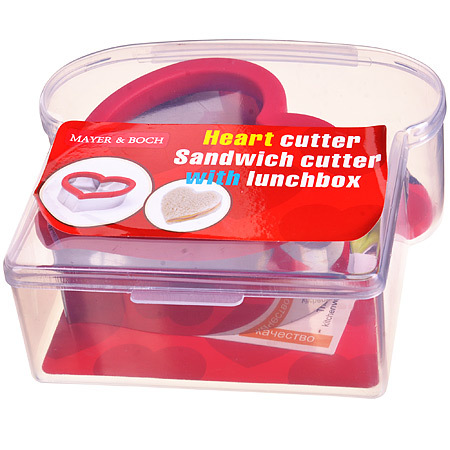 Фигурная форма для сэндвича MAYER&BOCH выполнена из нержавеющей стали и цветного пластика. Форма проста и удобна в использовании. С ее помощью можно вырезать сэндвичи необычной формы, которые порадуют не только ваших детей, но и всех членов вашей семьи. Форма упакована в прозрачный, пластиковый контейнер с герметичной крышкой. В таком контейнере вам будет удобно хранить сэндвичи, а также взять их с собой в дорогу. Хранить в сухом месте, вдали от источников тепла. Форма легко моется проточной водой. В комплекте: 1 форма для сэндвича, 1 пластиковый контейнер.