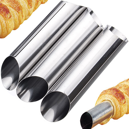 Набор форм MAYER&BOCH 3 штуки,предназначен для выпекания формовых кондитерских изделий, круассанов и трубочек. Пользоваться предметами просто: нужно обернуть их слоем теста и поставить в духовку. Во избежание прилипания теста рекомендуется смазывать форму маслом перед использованием, изделия отличаются долговечностью и стойкостью к коррозии. Подходит для мытья в посудомоечной машине.