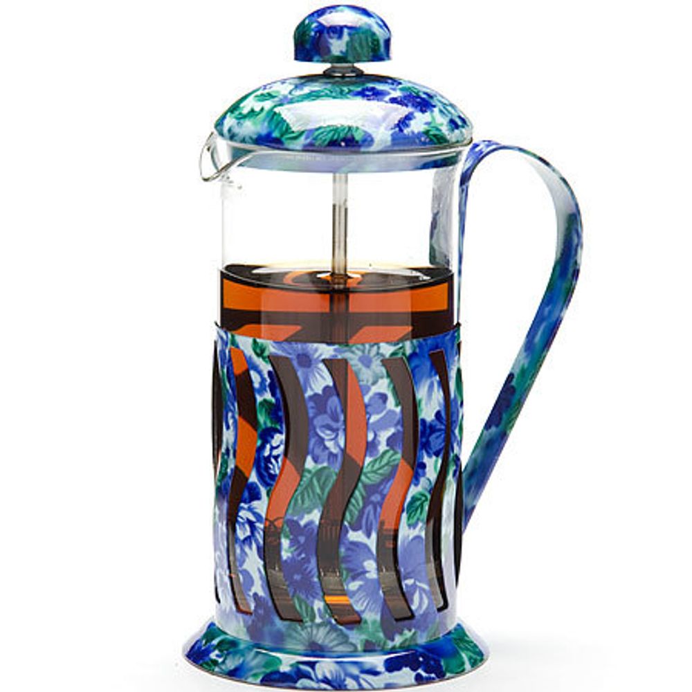Чайник заварочный Френч-Пресс. Материал: термостойкое стекло, нержавеющая сталь. Объем: 350 мл. Цвет: синий, белый, зеленый. Рисунок: цветы. Вес: 280 г. Размер упаковки: 11 х 10 х 20,5 см. МВ (х36). Страна производитель: Китай.