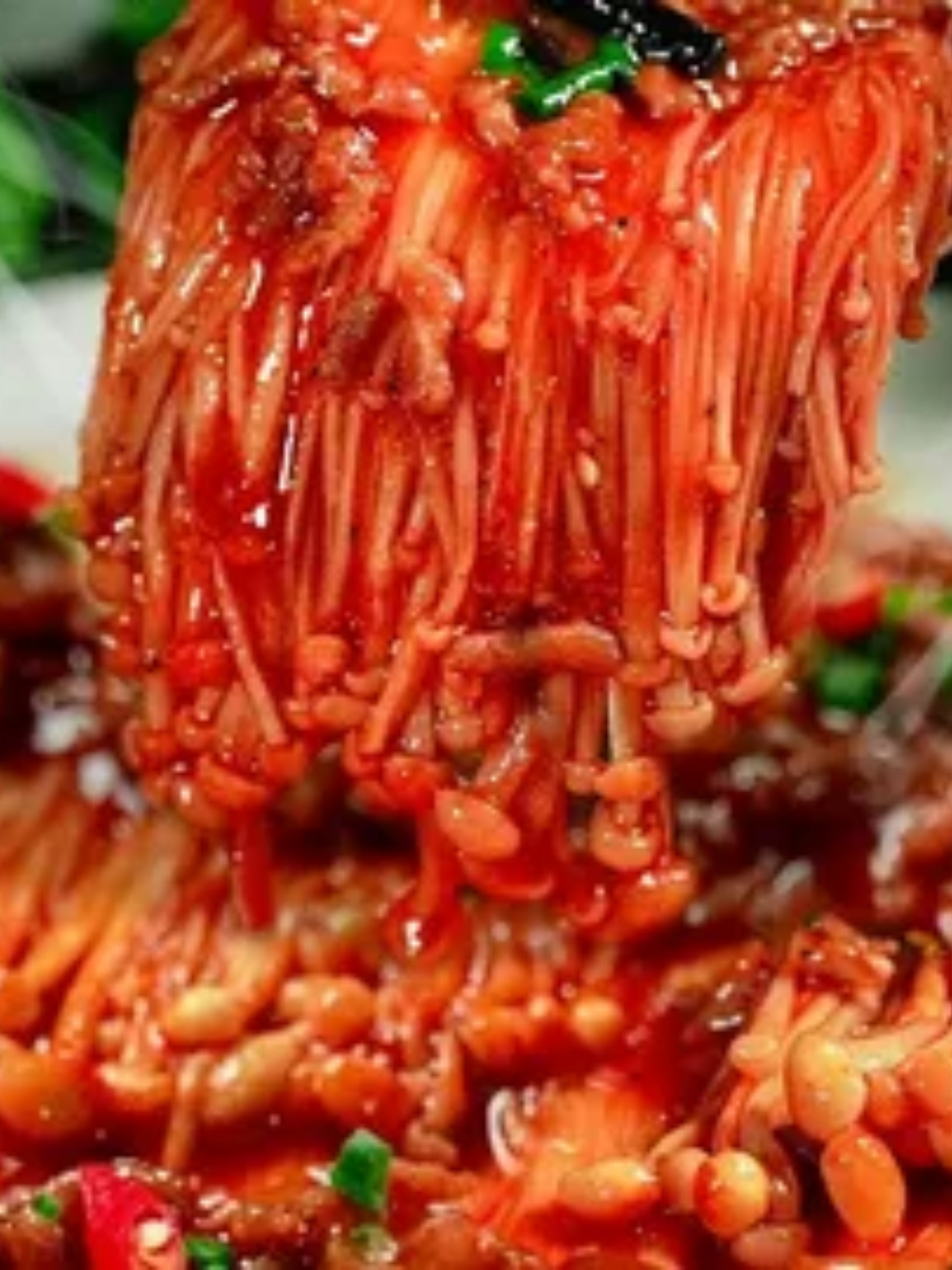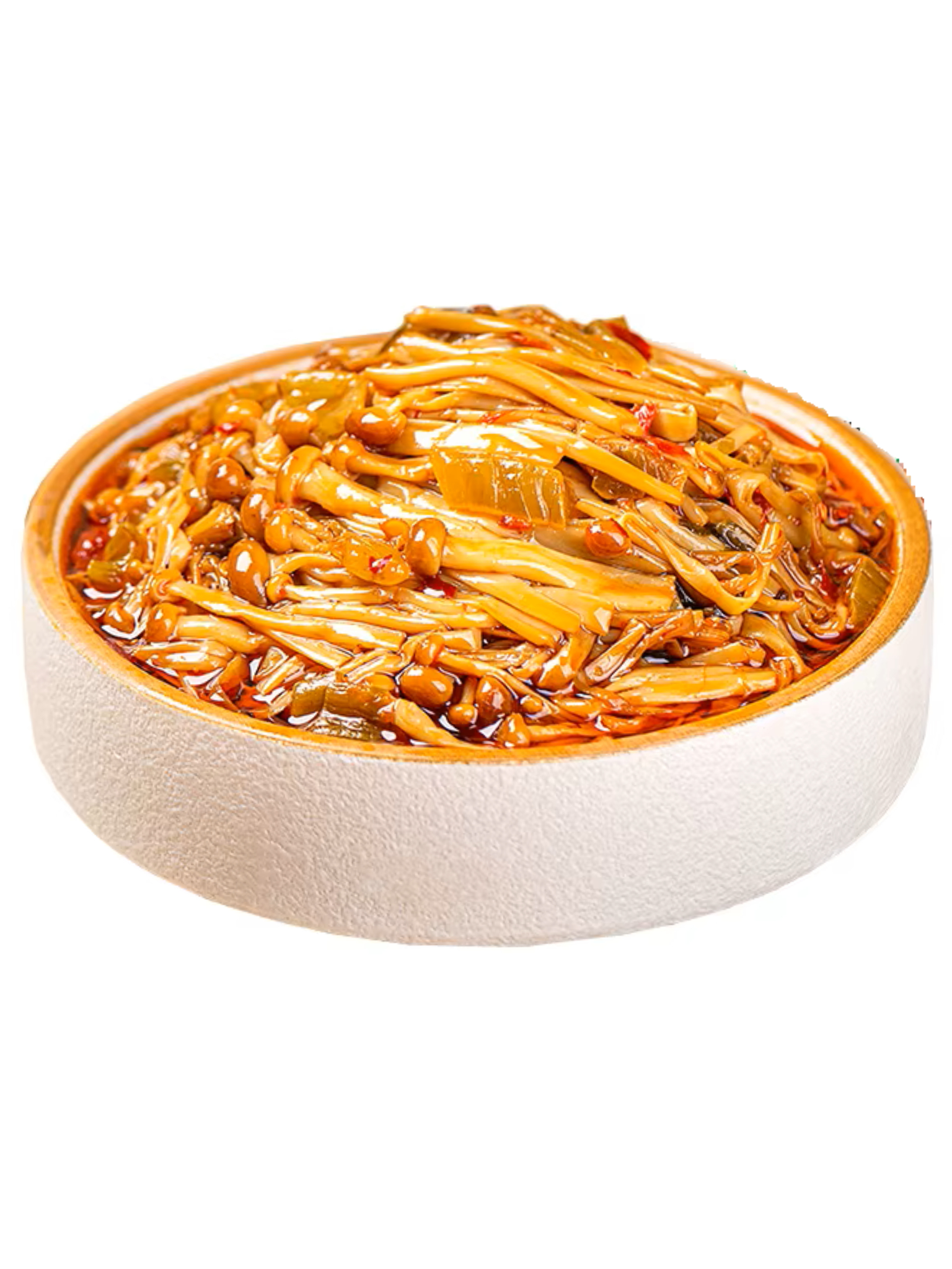 Грибы эноки, растительное масло, пищевая соль, масло из острого перца, кунжутное масло, добавки