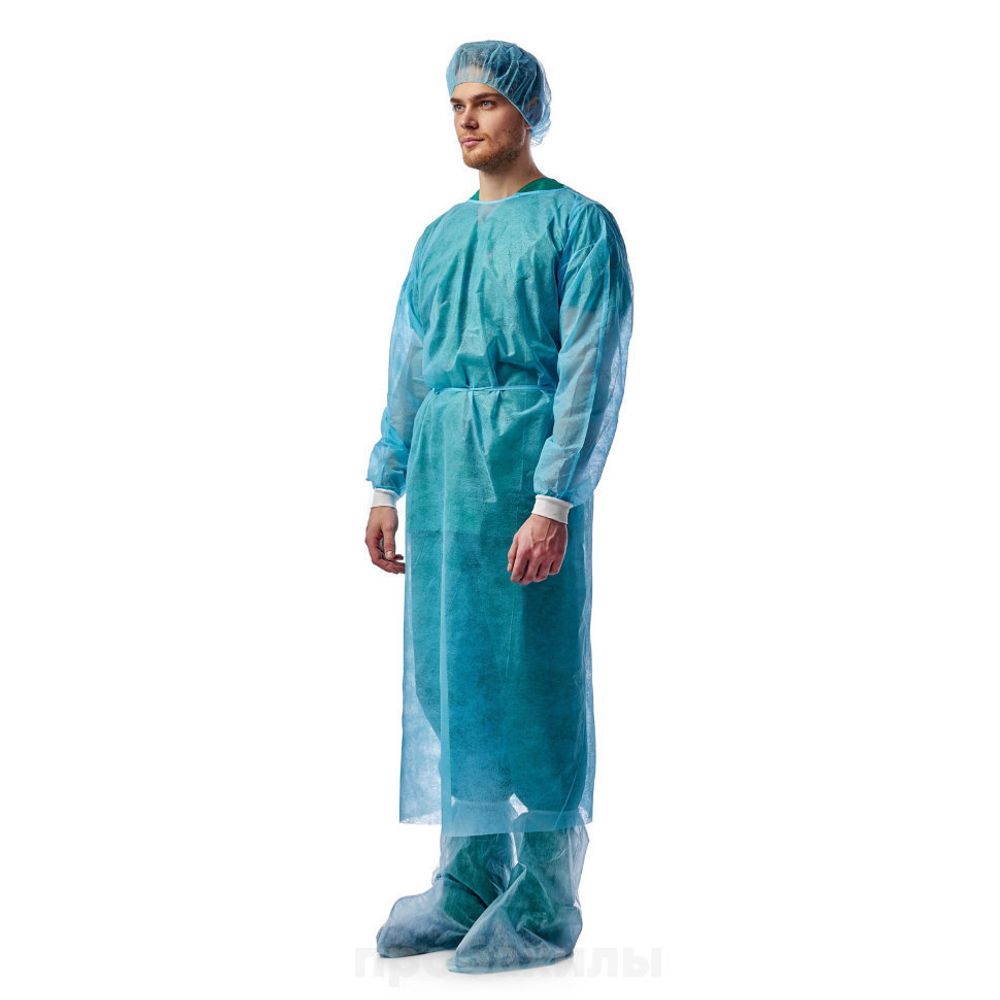 Халат хирургический Китай Спанбонд рукав на манжете стерильный голубой, XL