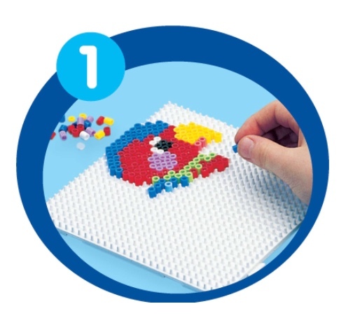 Вы можете придумывать свои собственные сюжеты , или воспользоваться руководством из комплекта. Уложите бусины на доске по своему желанию так, чтобы получить нужный вам результат. Вы можете перемещать бусины с места на место до тех пор, пока они не проглажены утюгом, после этого бусины уже не возможно перемещать. Горячим утюгом, слегка нажимая, мелкими вращательными движениями проведите по гладильной бумаге, покрывающей рисунок на доске. После короткого времени глажки цвета бусинок неожиданно станут более отчетливо видны через бумагу, что является признаком того, что аппликация готова. Осторожно снимите гладильную бумагу и дайте аппликации остыть, не снимая её с доски. При необходимости повторите глажку через гладильную бумагу. Осторожно снимите аппликацию с доски. Лучший результат достигается, когда аппликация полностью остывает под небольшим прессом, например книгой.