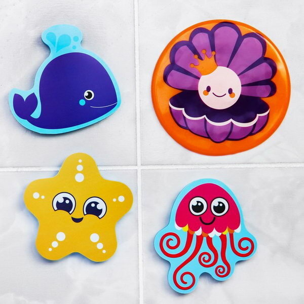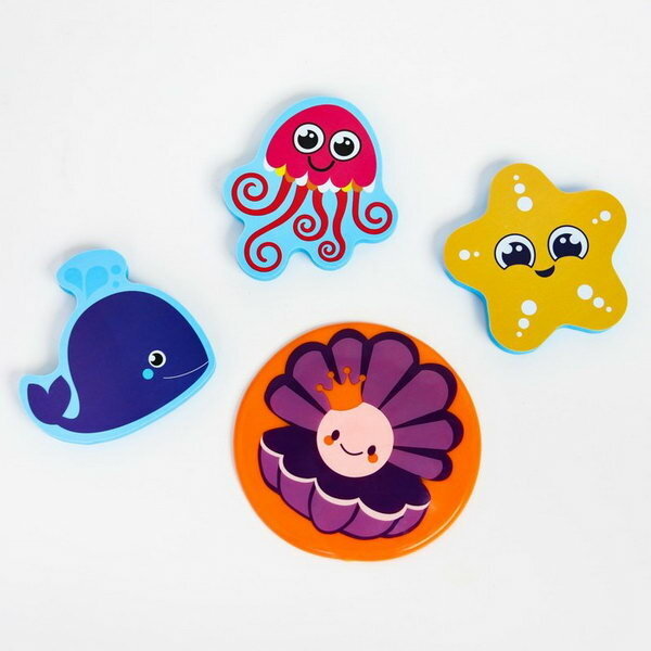Набор игрушек для ванны Морские жители: фигурки-стикеры из EVA, 3 шт. + сетка для хранения игрушек на присосках