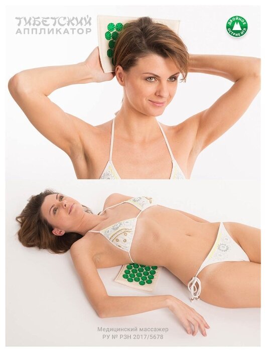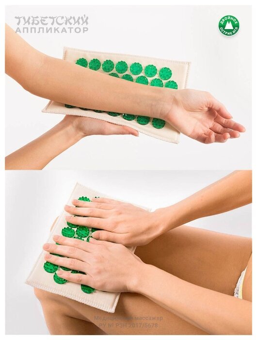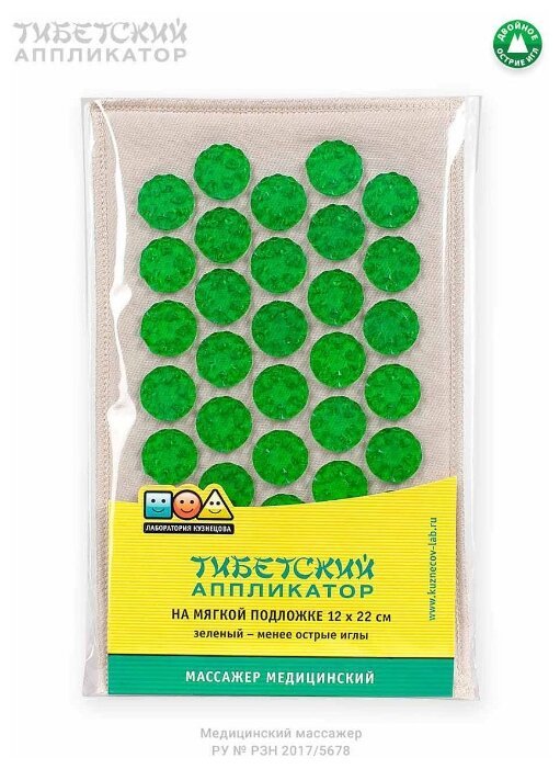 Лаборатория Кузнецова массажный коврик Тибетский аппликатор на мягкой подложке 12х22 см (менее острые иглы) 22x12 см зеленый