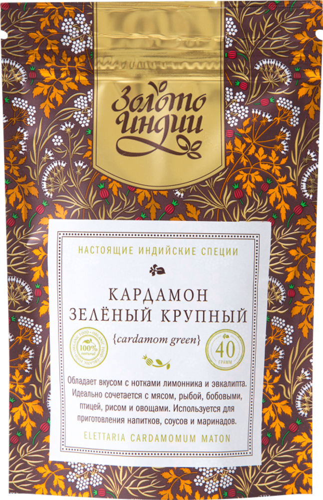 Подавайте горячим и наслаждайтесь ароматом зеленого кардамона Золото Индии Пряность Кардамон зелёный целый.