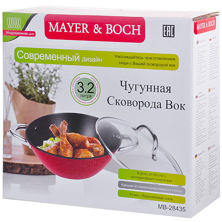 Казан MAYER&BOCH, изготовленный из чугуна, идеально подходит для жарки продуктов на раскаленном масле и приготовления блюд азиатской кухни. Его можно использовать для приготовления плова, густого супа, рагу. Казан имеет антипригарное покрытие, обеспечивающее посуде долговечность и легкость очистки. Благодаря толстым стенкам и антипригарному покрытию тепло равномерно распределяется по всей поверхности посуды и долго сохраняется. Индукционное дно значительно снижает вероятность пригорания пищи. Казан снабжен короткими ручками из нержавеющей стали. Стеклянная крышка с металлическим ободом позволит вам следить за процессом приготовления блюда. Подходит для использования на всех типах кухонных плит, включая индукционные. Подходит для мытья в посудомоечной машине. В комплекте: казан, стеклянная крышка,