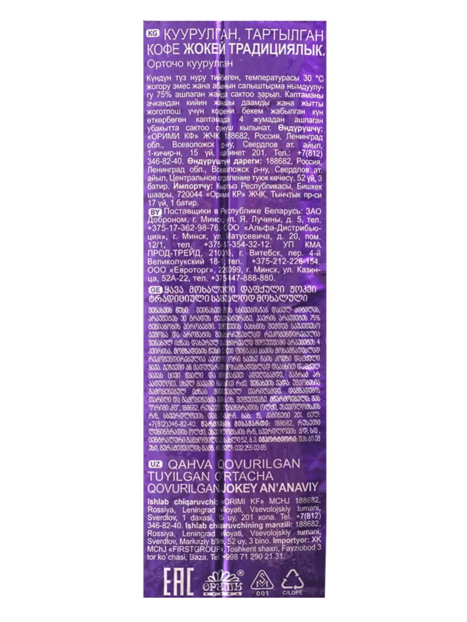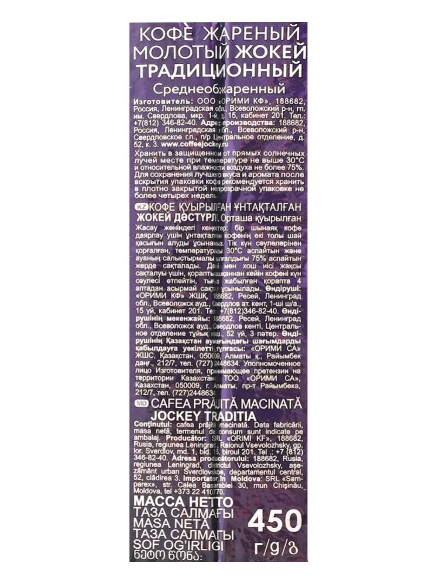 Кофе молотый Жокей Традиционный средней обжарки 450 г