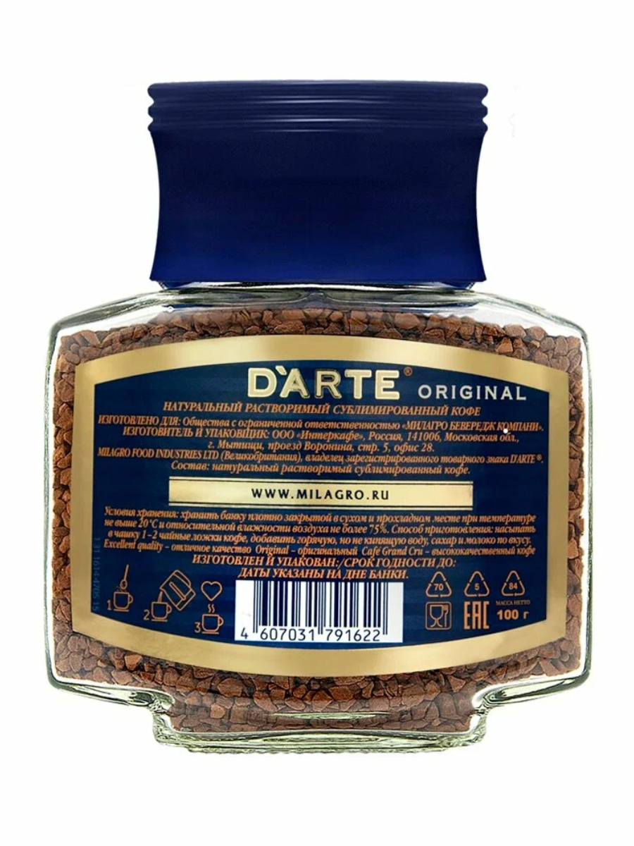 Кофе растворимый D'Arte Grand Cru Original 100 г x 4 шт