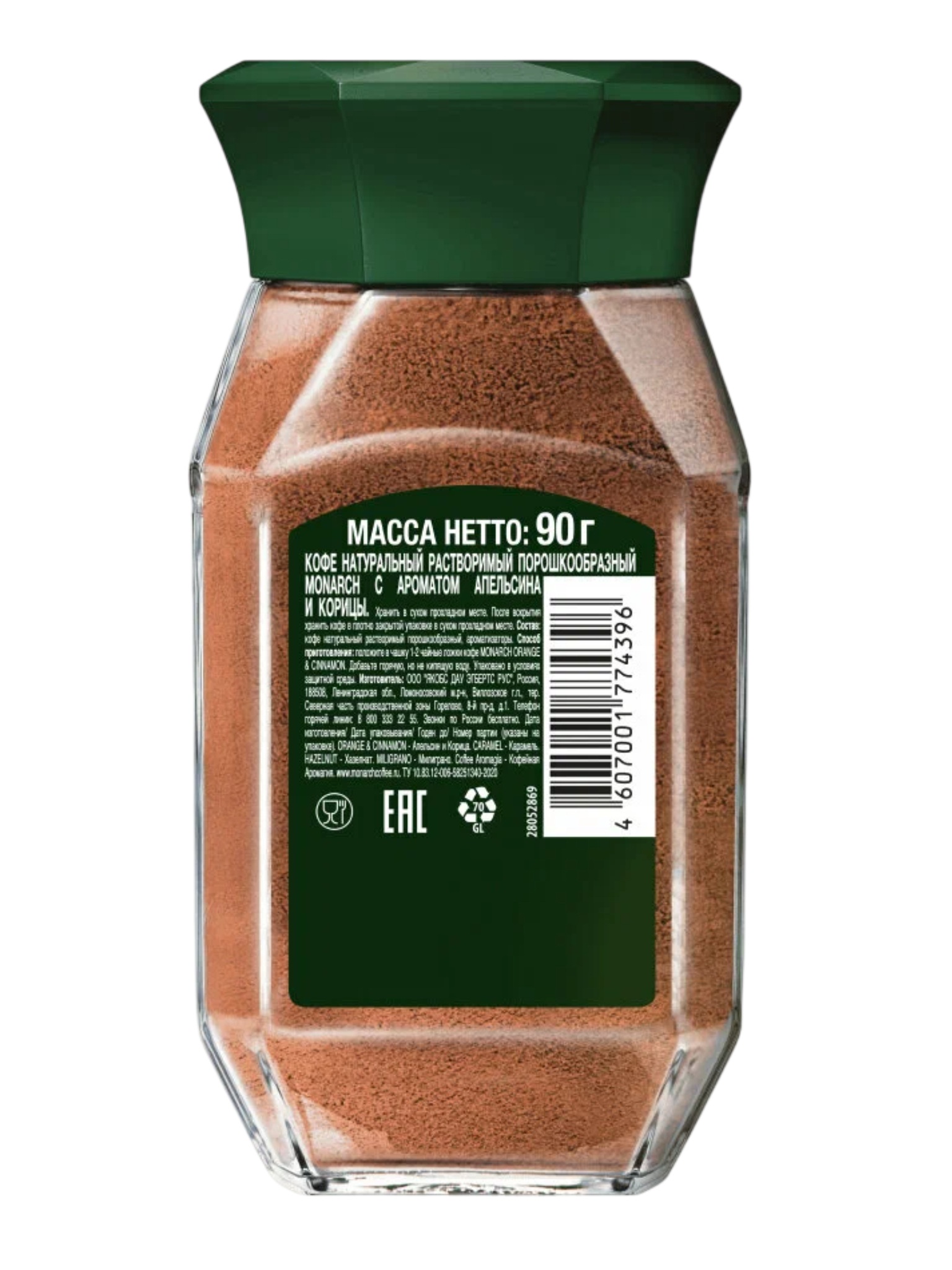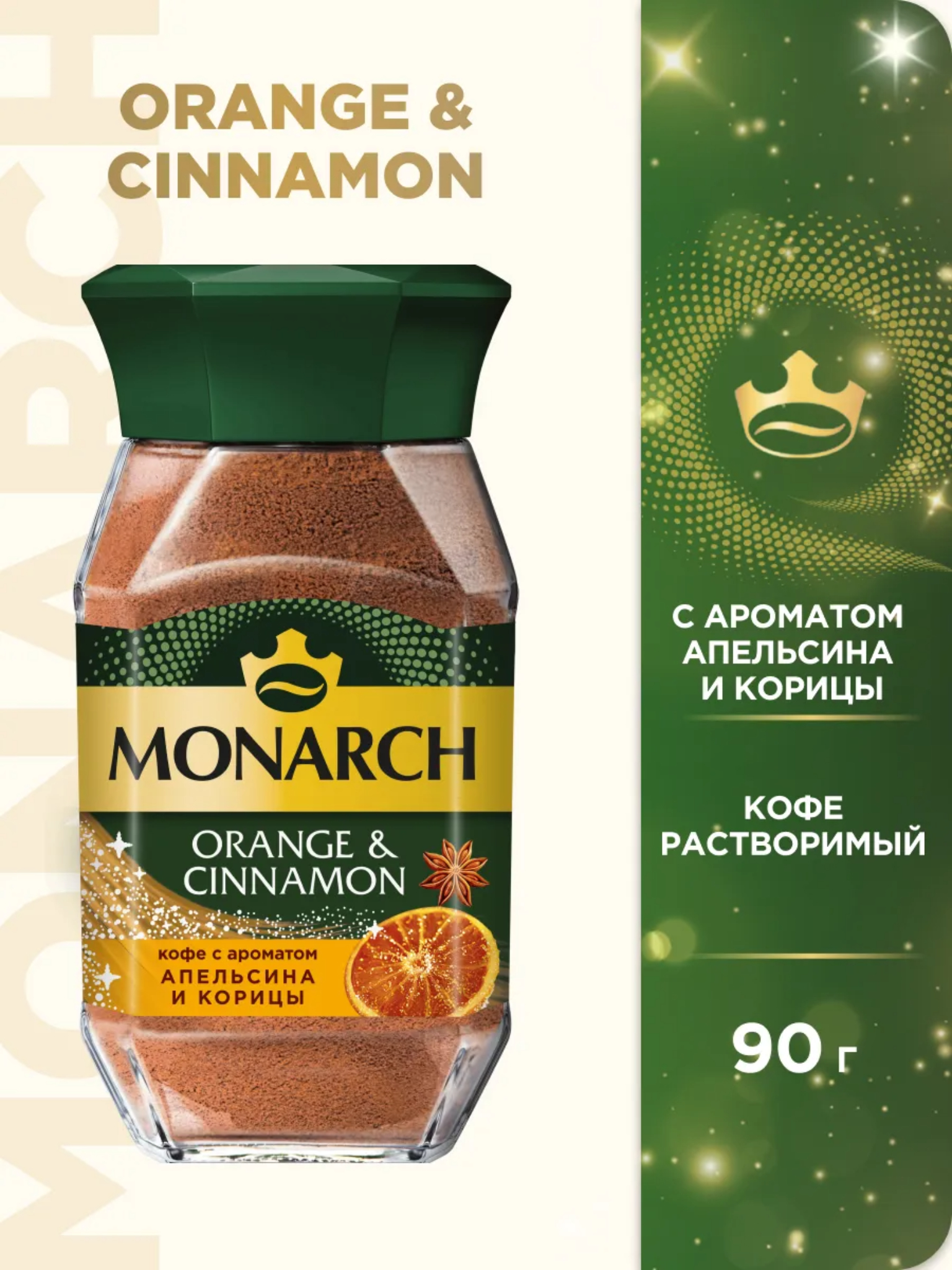 Кофе растворимый Monarch Orange & Cinnamon — это быстрорастворимый кофе с добавлением аромата апельсина и корицы. Такой продукт сочетает в себе классический вкус кофе с пряными нотками корицы и апельсина, что делает его популярным среди любителей необычных кофейных напитков.