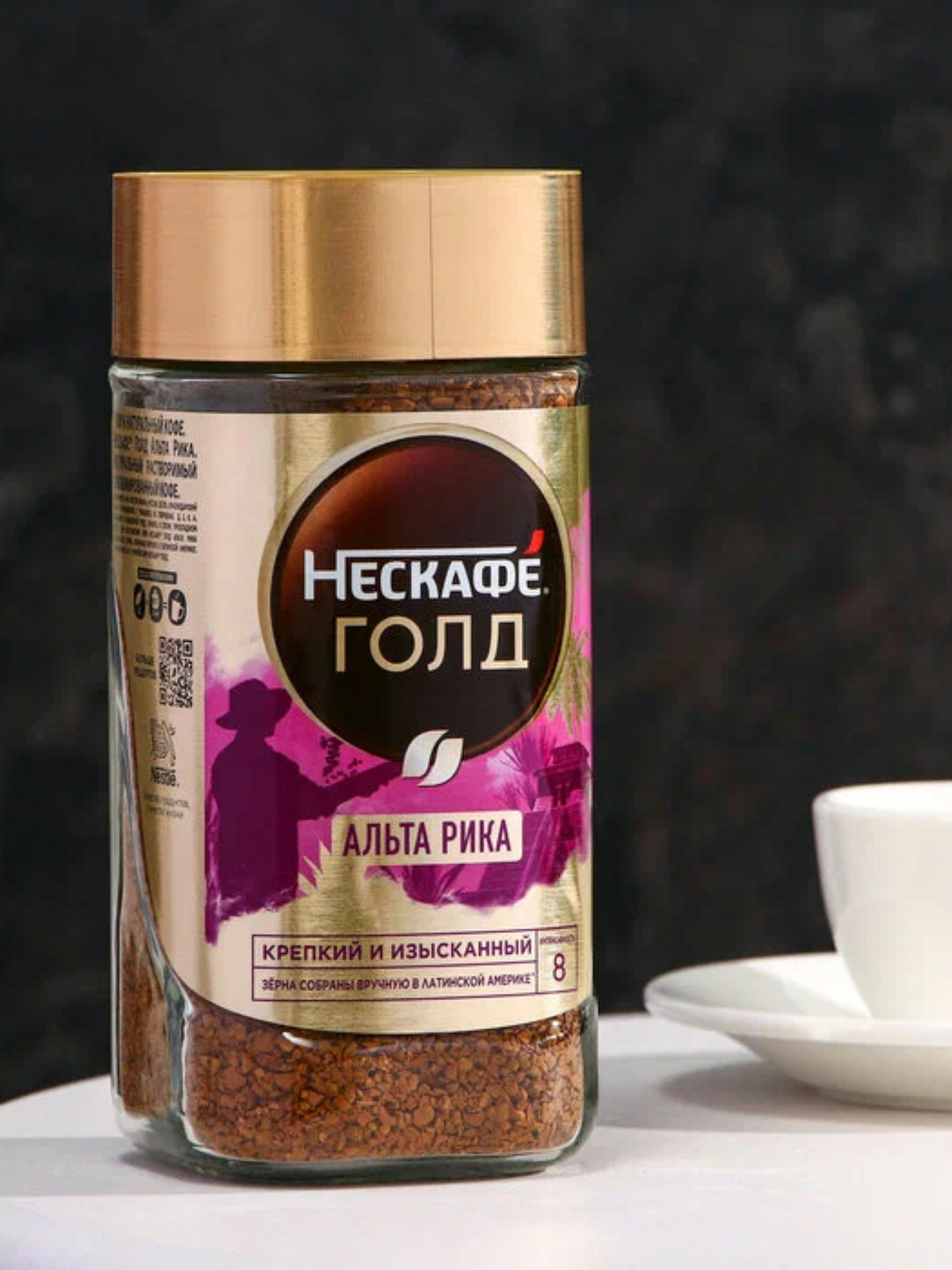 Натуральный растворимый сублимированный кофе Нескафе Альтарика Крепкий и изысканный. Зёрна собраны вручную в Латинской Америке