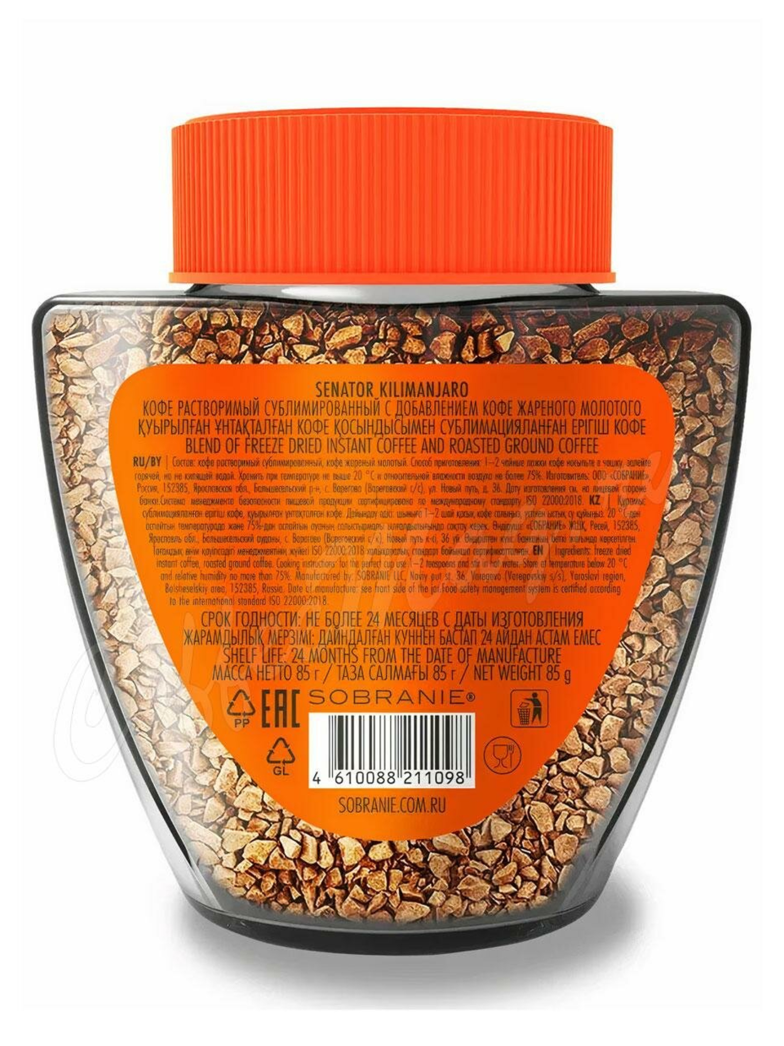 Кофе растворимый сублимированный с добавлением кофе жареного молотого Сенатор Килиманджаро. Кофейные зерна, которые используются для создания купажа кофе SENATOR KILIMANJARO, произрастают в топических лесах самой высокой горы Африки, плодородные почвы которой насыщают кофе полезными минеральными веществами. Во вкусе этого превосходного кофе различимы яркие шоколадные пряные и цитрусовые нотки.