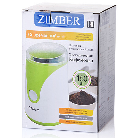 Если Вы любите выпить по утрам чашку горячего, крепкого кофе, то эта компактная и функциональная кофемолка ZIMBER станет для Вас прекрасным приобретением. Данная модель снабжена ротационными ножами, которые быстро и качественно перемелют кофе. Причем за один раз может быть перемолото до 50 грамм зерен. Импульсный режим позволяет перемолоть даже очень твердые зерна за считанные секунды. Кофемолка оснащена функцией защиты от перегрева. Цветной пластиковый корпус кофемолки имеет современный дизайн и прекрасно впишется в интерьер любой кухни. Настоящие любители и ценители кофе обязательно почувствуют разницу между самостоятельно перемолотым свежим зерновым кофе и простым молотым, купленным в магазине.