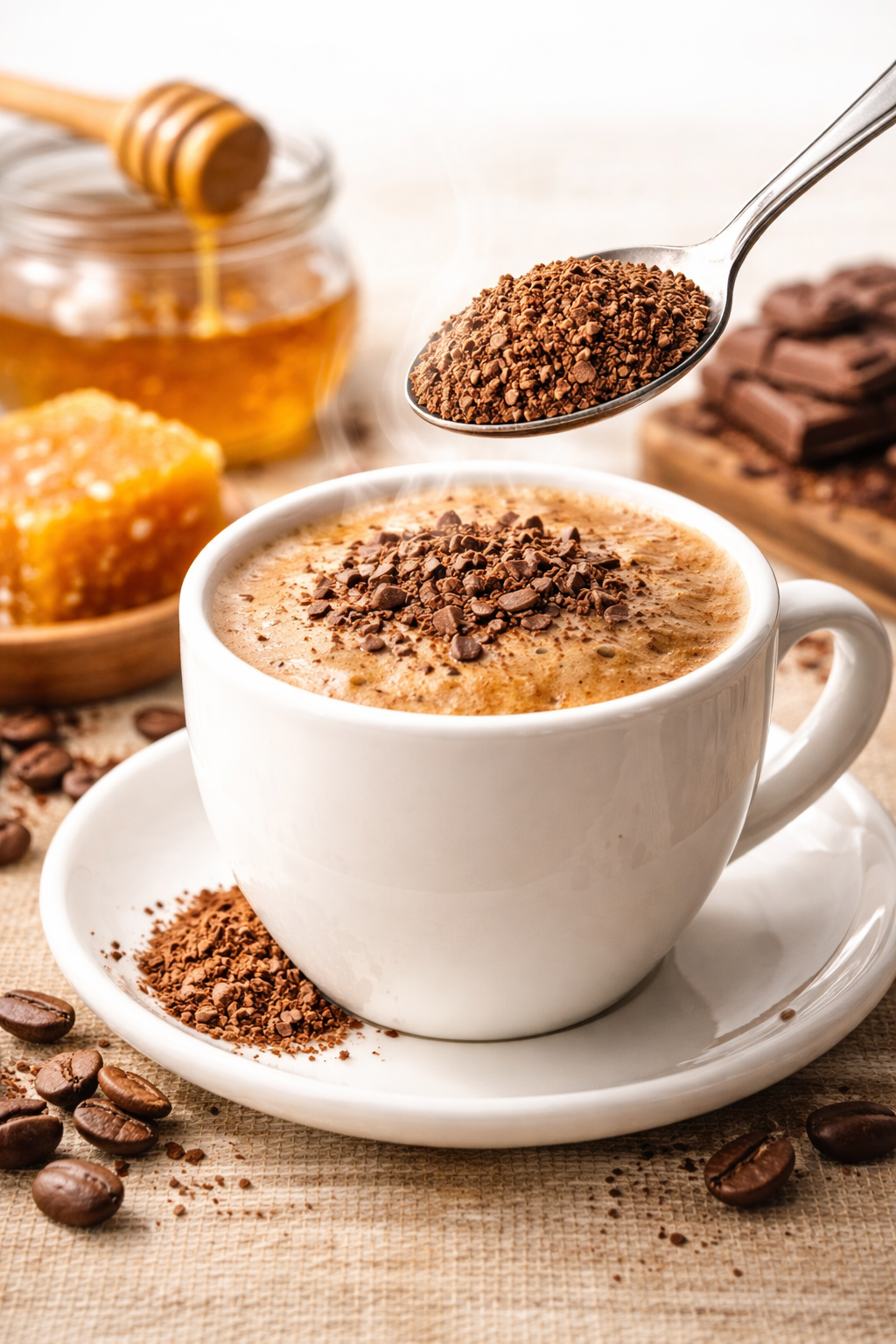 сухое молоко, шоколадный порошок, сахар, молотые зерна арабики, масло, какао-масло, кокосовое масло, ароматизатор