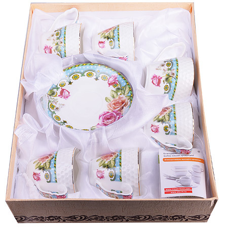 Кофейный набор LORAINE выполнен из высококачественного костяного фарфора белого цвета и украшен нежным цветочным рисунком. Изящный дизайн и красочность оформления придутся по вкусу и ценителям классики, и тем, кто предпочитает утонченность и изысканность. Кофейный набор - идеальный и необходимый подарок для вашего дома и для ваших друзей в праздники, юбилеи и торжества! Он также станет отличным корпоративным подарком и украшением любой кухни. Набор упакован в подарочную упаковку. Такой кофейный набор станет прекрасным украшением стола. Это замечательный выбор для подарка родным и друзьям! Подходит для мытья в посудомоечной машине.