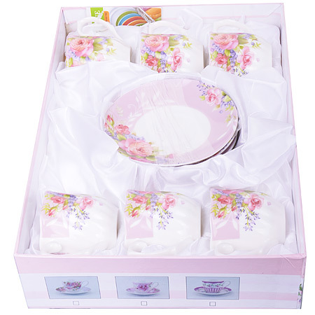 Кофейный сервиз LORAINE на 6 персон изготовлен из качественного фарфора и оформлен красивым цветочным рисунком. Элегантный и удобный чайный сервиз не только украсит сервировку стола, но и поднимет настроение и превратит процесс чаепития в одно удовольствие. Сервиз состоит из 12 предметов: 6-ти чашек и 6-ти блюдец, упакованных в подарочную коробку. Чашки имеют удобную, изящную ручку. Изделия легко и просто мыть. Чайный сервиз прекрасно подойдет в качестве подарка для родных и друзей на любой праздник!