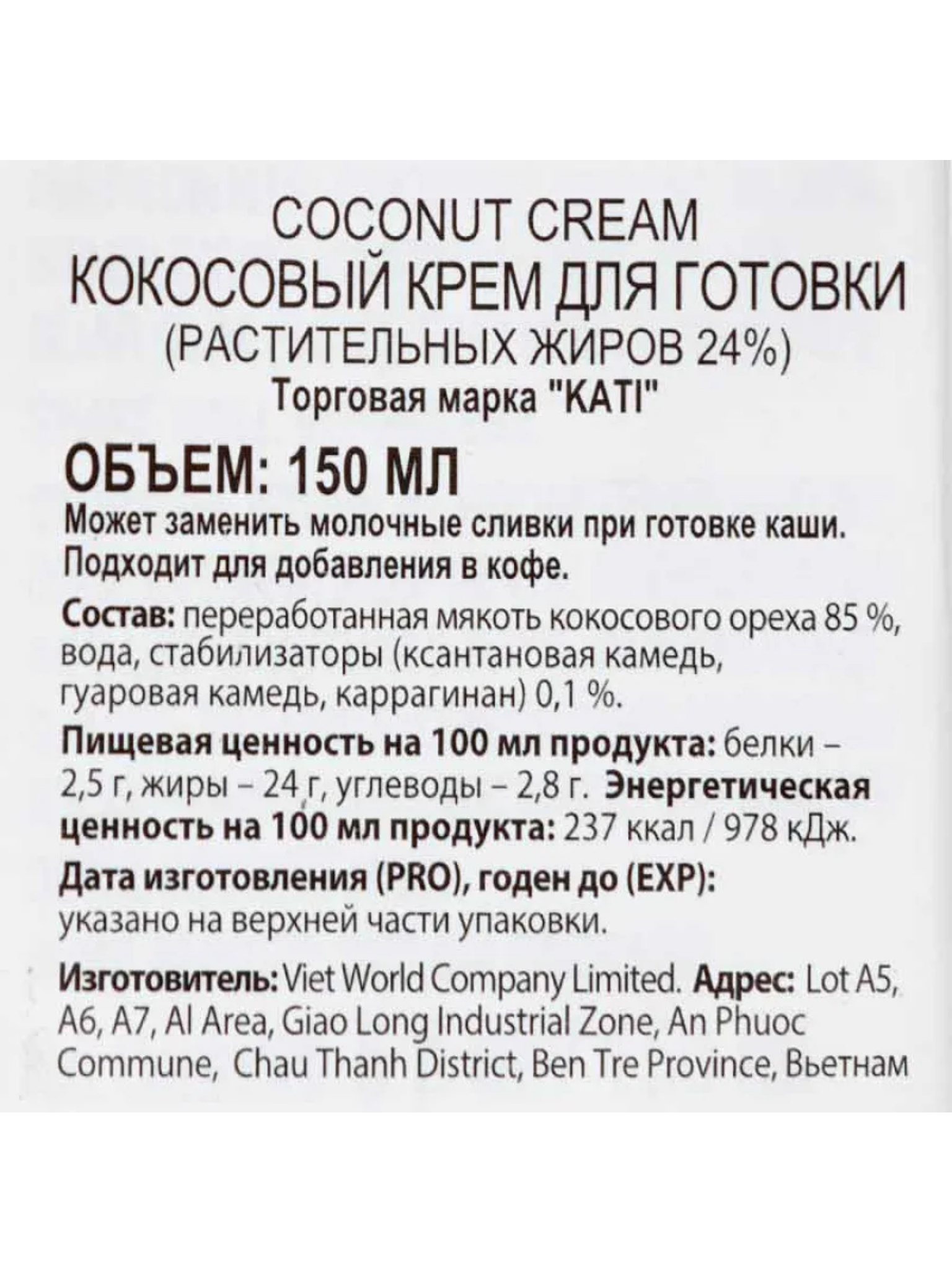 Кокосовые сливки Kati Coconut Cream 24% 150 мл x 6 шт