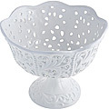 Конфетница на ножке LORAINE выполнена из белого доломита и украшена оригинальным резным ажурным узором со стразами в Восточном стиле. Стильная форма и интересное исполнение идеально впишутся в любой кухонный интерьер, а классический белый цвет и изящный дизайн украсит праздничную сервировку стола к любому торжеству. Конфетница предназначена для сервировки конфет, зефира, печенья, а также других сладостей. Такая конфетница также станет замечательным подарком к празднику.