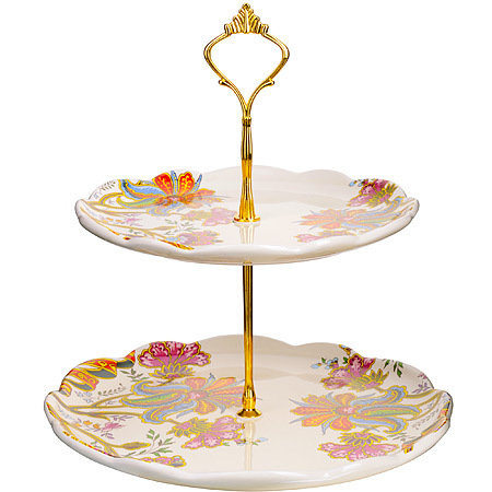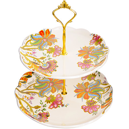 Красочная конфетница LORAINE, выполненная из высококачественной керамики, сочетает в себе классический дизайн с максимальной функциональностью. Конфетница состоит из 2-х ярусов разного размера и предназначена для красивой сервировки конфет, фруктов и десертов. Круглые ярусы конфетницы имеют волнистые края. Стойка-держатель конфетницы выполнена из металла с золотым напылением. Высота конфетницы в собранном виде составляет около 28 см. Элегантная конфетница LORAINE украсит сервировку Вашего стола и подчеркнет прекрасный вкус хозяйки, а также станет отличным подарком. Изделие упаковано в индивидуальную коробку. Подходит для использования в холодильнике, посудомоечной машине.