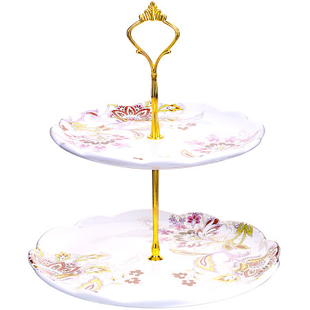 Красочная конфетница LORAINE, выполненная из высококачественной керамики, сочетает в себе классический дизайн с максимальной функциональностью. Конфетница состоит из 2-х ярусов разного размера и предназначена для красивой сервировки конфет, фруктов и десертов. Круглые ярусы конфетницы имеют волнистые края. Стойка-держатель конфетницы выполнена из металла с золотым напылением. Высота конфетницы в собранном виде составляет около 28 см. Элегантная конфетница LORAINE украсит сервировку Вашего стола и подчеркнет прекрасный вкус хозяйки, а также станет отличным подарком. Изделие упаковано в индивидуальную коробку. Подходит для использования в холодильнике, посудомоечной машине.