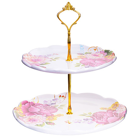 Красочная конфетница LORAINE, выполненная из высококачественной керамики, сочетает в себе классический дизайн с максимальной функциональностью. Конфетница состоит из 2-х ярусов разного размера и предназначена для красивой сервировки конфет, фруктов и десертов. Круглые ярусы конфетницы имеют волнистые края. Стойка-держатель конфетницы выполнена из металла с золотым напылением. Высота конфетницы в собранном виде составляет около 28 см. Элегантная конфетница LORAINE украсит сервировку Вашего стола и подчеркнет прекрасный вкус хозяйки, а также станет отличным подарком. Изделие упаковано в индивидуальную коробку. Подходит для использования в холодильнике, посудомоечной машине.